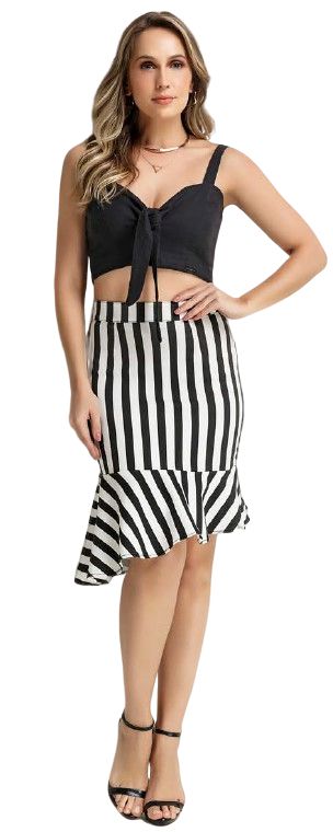 Saia Fashion: comprimento abaixo do joelho justa ou ampla.